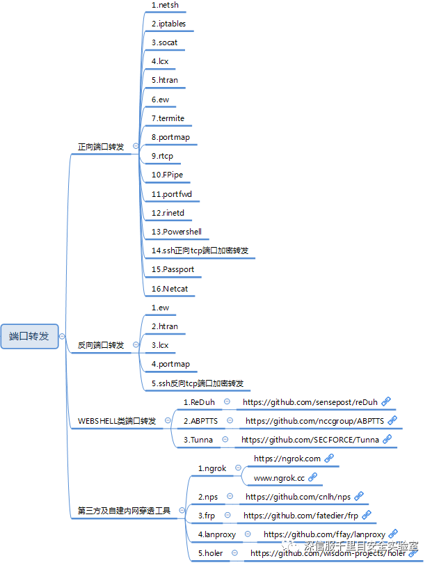 端口转发:外网主机A已经可以访问内网主机B里的任意端口,但是无法访问内网主机C上的端口,此时可以将C主机的端口转发到主机B端口,那么外网主机A访问了内网主机B就等于访问了内网主机C